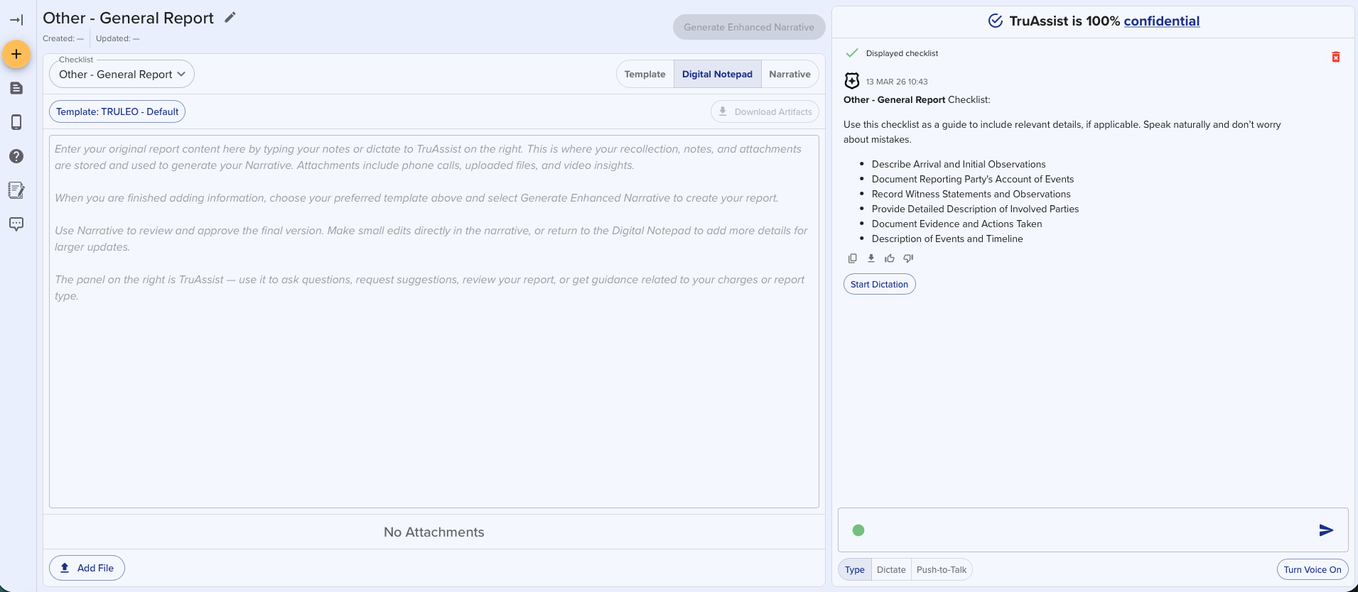 3. Start a report or talk to TruAssist (Digital Notepad)