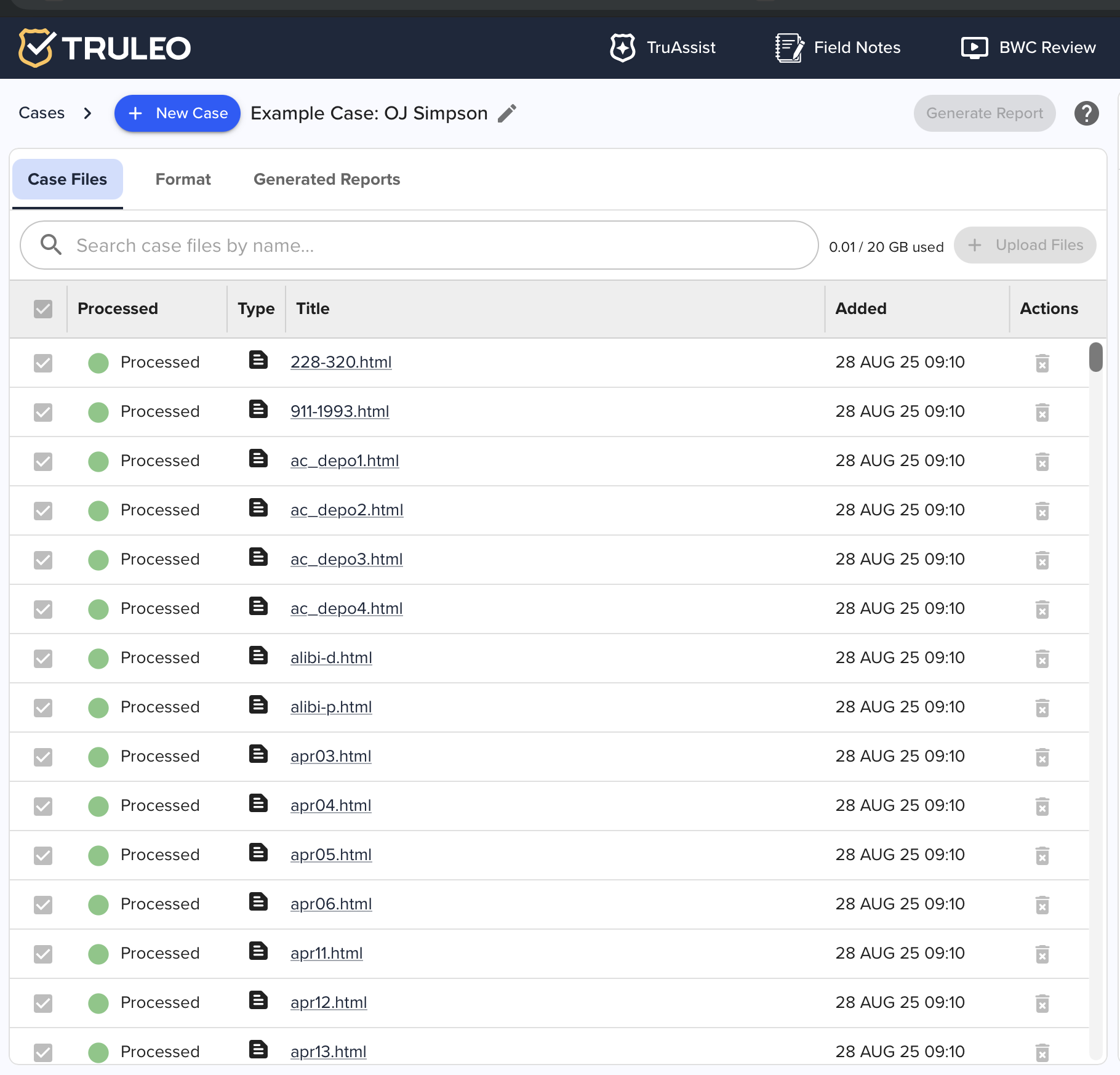 Enter a descriptive case name (e.g., “Case 09-30-25 Traffic Stop” or “Simpson Example Case”).