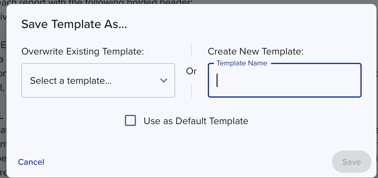 To overwrite an existing Template, choose one from the “Overwrite Existing Format” dropdown.